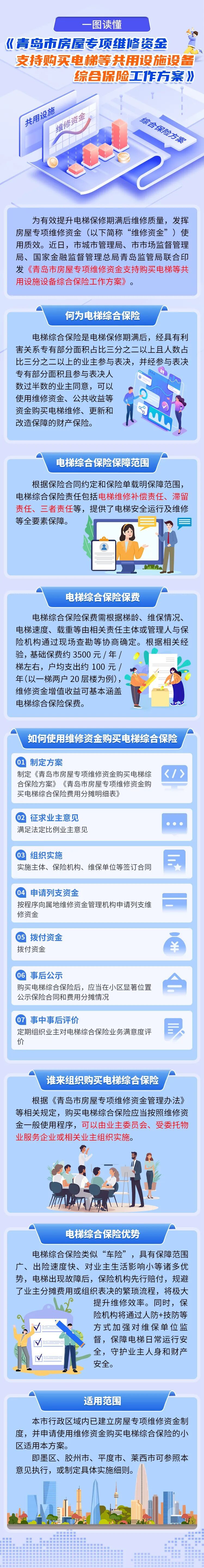 一图读懂《青岛市房屋专项维修资金支持购买电梯等共用设施设备综合保险工作方案》