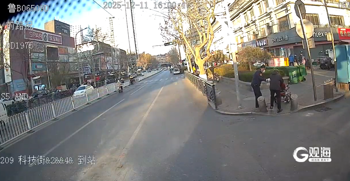 青岛日报社/观海新闻12月15日讯 冬日街头,一位老人在科技街附近因电动轮椅突然断电,被困于人行道台阶下。路过此处的青岛城运控股公交集团市北巴士第三分公司209路线驾驶员迟野磊见状主动停车,上前将老人与轮椅平稳推过台阶。这举手之劳的一推,不仅解决了老人的实际困难,更传递了城市中的善意与温度。
