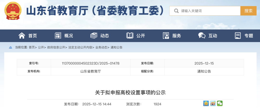公示期为2025年12月15日至2025年12月19日。公示期内,如有不同意见,请通过邮寄或电子邮件(扫描件)方式据实向山东省教育厅反映。以单位名义反映的应加盖公章,以个人名义反映的应署真实姓名、身份证号和联系电话,逾期不予受理。