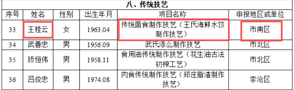 项目名称:王氏海鲜水饺制作技艺