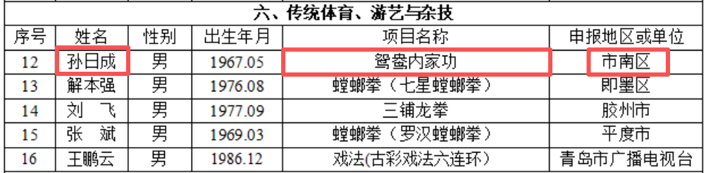 喜报近日,青岛市文化和旅游局正式公布了第六批市级非物质文化遗产代表性传承人名单。市南区孙日成、王桂云、杨雅茜三位传承人入选: