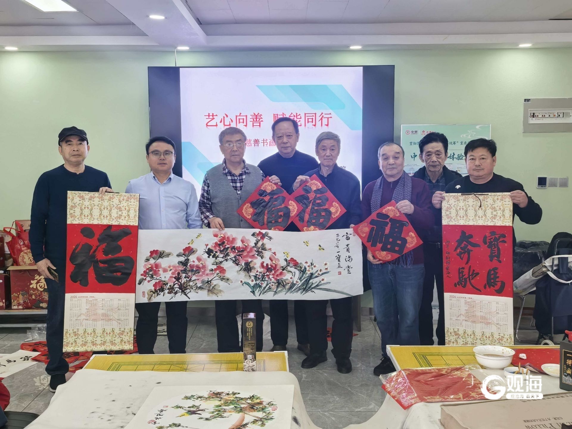 青岛日报社/观海新闻12月24日讯 日前,一场以“艺心向善,赋能同行”为主题的慈善书画活动在市北区吴兴路139号中铁·青岛广场A座806室举行。本次活动由青岛市慈善书画院发起,携手“春暖爱心”公益项目,共同走进中粮特渠部(中粮集团全系产品冀鲁推广中心),以书画为媒介,传递慈善精神,赋能企业与文化的深度融合。