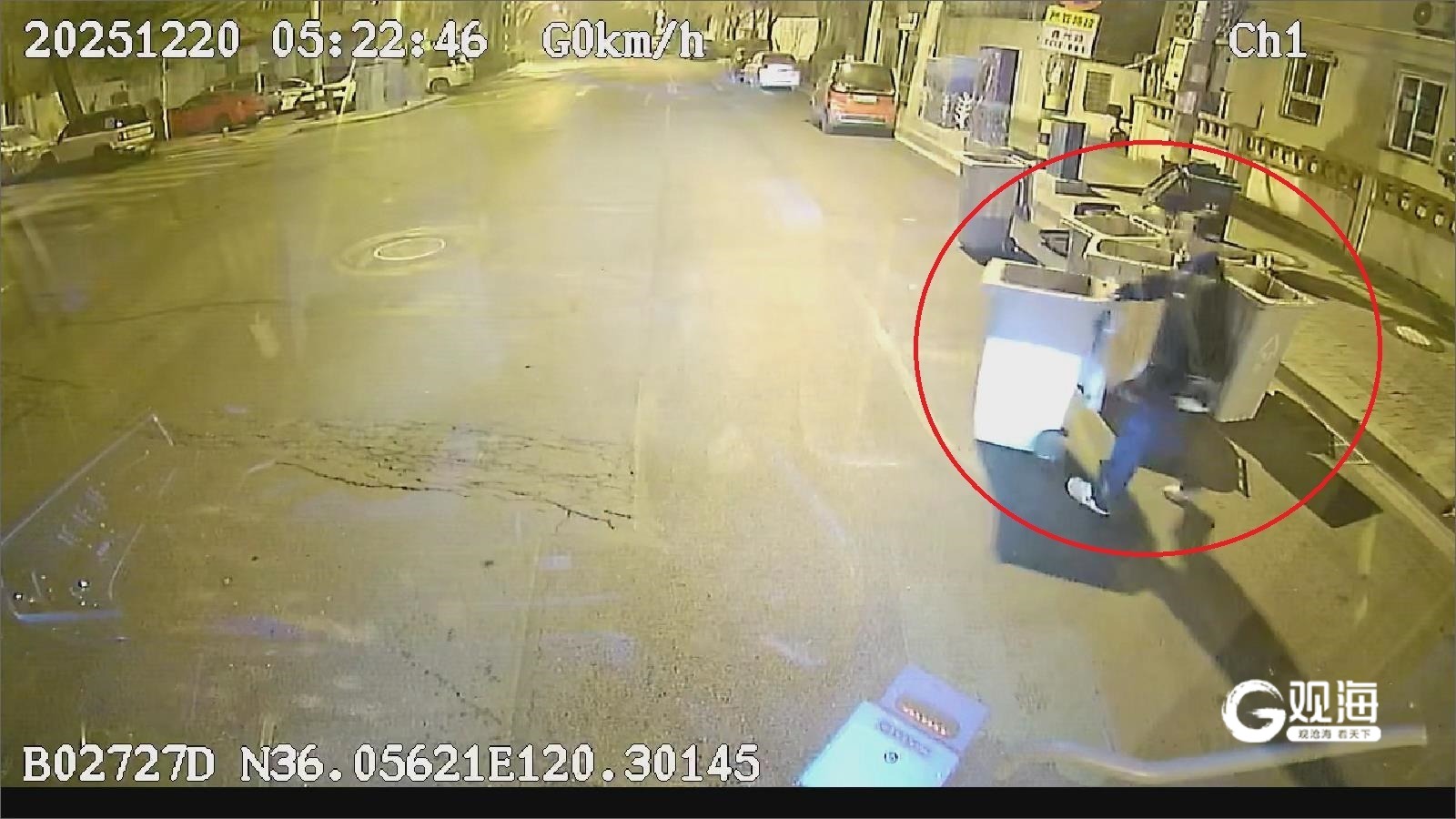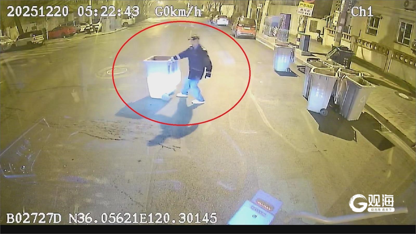 12月20日凌晨5时许,天色未明。沈磊如往常一样驾车行至贵州路路段时,借着车灯光束,他目光敏锐地捕捉到前方路况异常——一个垃圾桶横倒在道路中央,另有几个堆放在马路边。凭借多年驾驶经验和近期大风天气的预判,他迅速意识到:这很可能是夜间强风将垃圾桶吹到了行车道上。