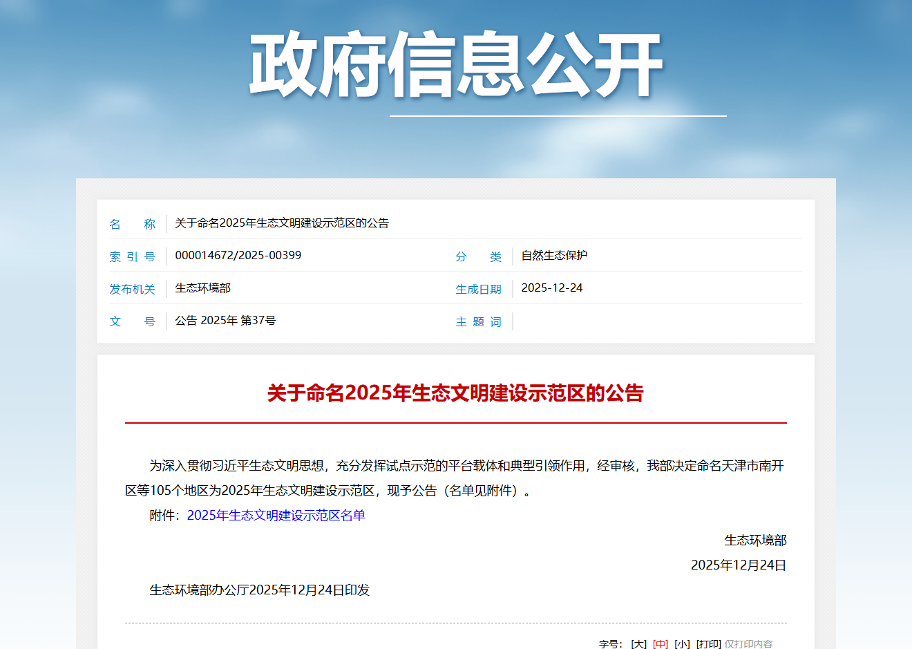 青岛日报社/观海新闻12月25日讯 12月24日至25日,2025年生态文明论坛在北京举行。在25日的主题论坛现场,生态环境部发布第八批生态文明建设示范区名单,青岛市成功入选,成为本批次中唯一获评的副省级城市。