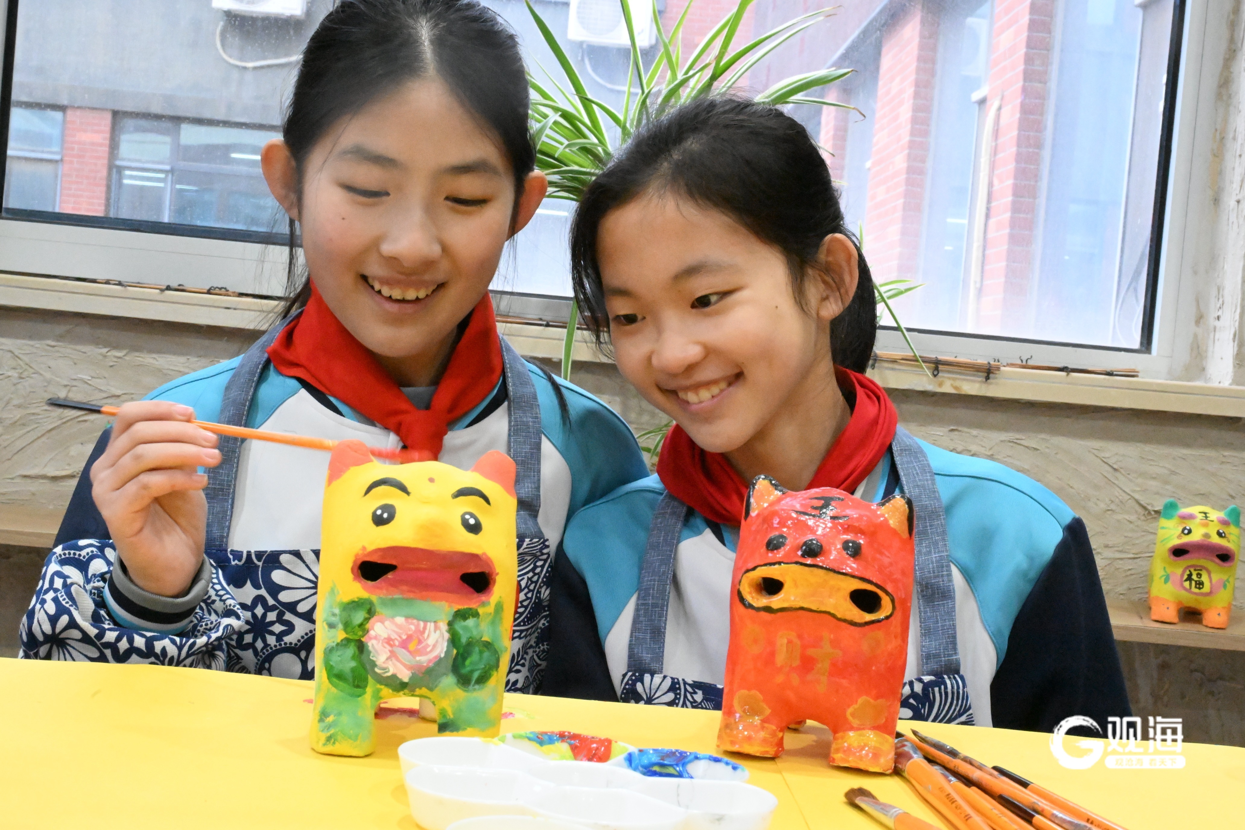 同学们借助手中的画笔和颜料,自由绘制出一只富有童趣、纹路独特的泥老虎。拿着头和尾挤压后,脆亮亮的响声、憨态可掬的模样让孩子们爱不释手。孩子们所绘的每一笔,每一色,寄予的都是对顺遂、安康和吉祥的美好愿望。孩子们不仅体验了传统民俗艺术的魅力,更收获了最简单纯粹的快乐。