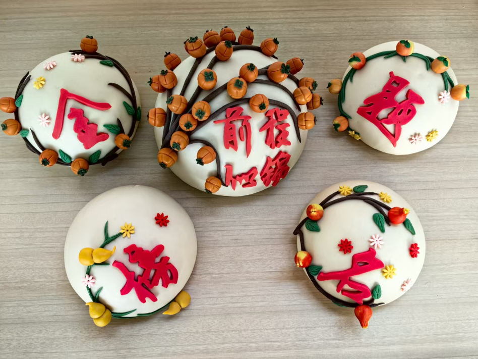 在产品形态上,她大胆跨界融合。除了经典的戗面大馒头,哪吒、敖丙等动画人物面塑,玫瑰、康乃馨等花束馒头,“大丰收”菜篮子造型的果蔬汁染色馒头,都被创新创作了出来。除了作为醇香甘甜的美味主食之外,大馒头被赋予了情感表达与社交礼物的新功能。2025年,第二十届中国电影华表奖颁奖典礼上,刘竹莲团队精心制作的“哪吒”主题艺术馒头惊艳亮相。面团塑成的哪吒脚踏风火轮,细节处巧妙融入海浪纹样,既传统又时尚,受到了多位明星喜爱和展示。