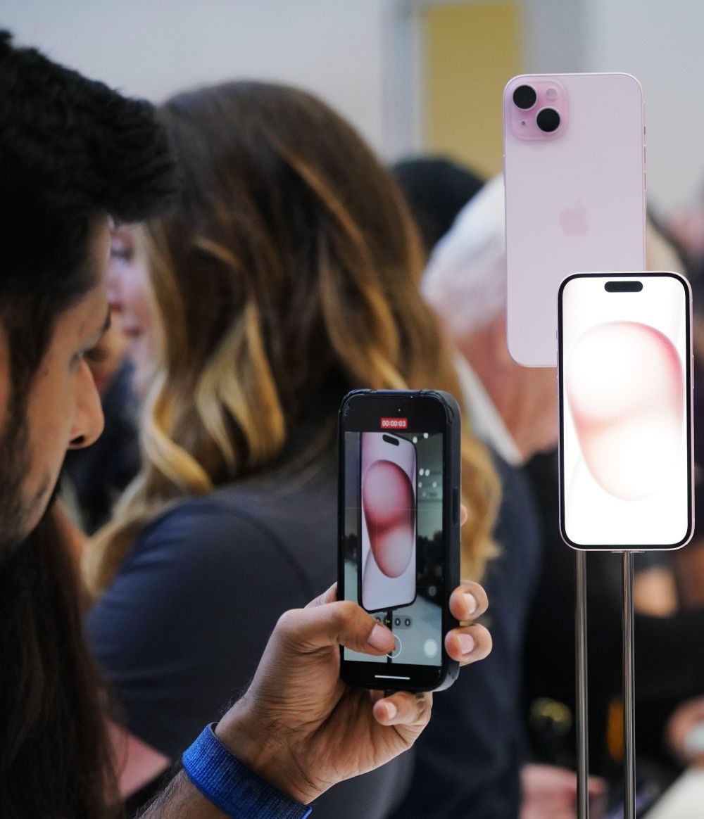 2023年9月12日,在美国加利福尼亚州丘珀蒂诺市举行的苹果新品发布会后,人们体验新品。新华社记者 吴晓凌 摄