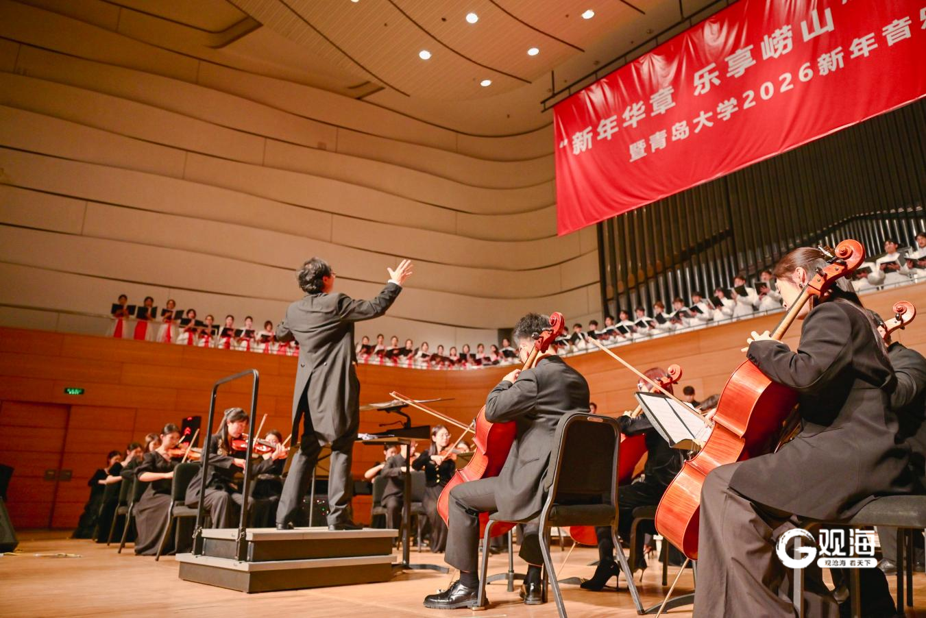 青岛日报社/观海新闻12月31日讯 30日晚,“新年华章 乐享崂山”交响音乐会暨青岛大学2026新年音乐会在青岛大剧院华彩启幕。各界嘉宾欢聚一堂,共赏音乐盛会,以激昂旋律迎接崭新一年。