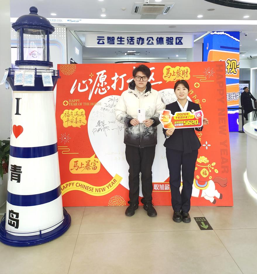 2026年1月1日,《2026年家电以旧换新、数码和智能产品购新补贴》政策正式生效,山东移动率先发力,在青岛福州路营业厅成功售出全省首单国补手机,用实打实的优惠点燃了市民元旦换机热潮。当天,不少消费者走进山东移动各大营业厅,趁着政策东风解锁新年新装备,现场人气火爆。