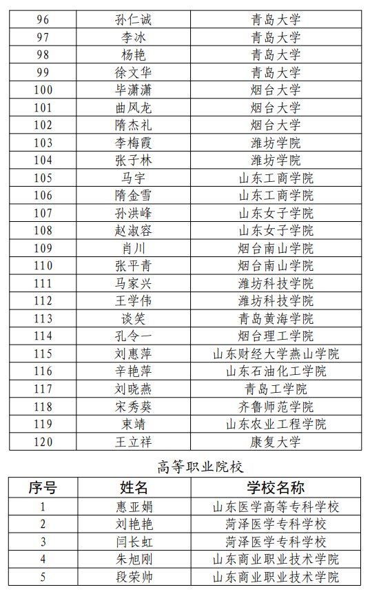 今天,山东省教育厅公示2025年省高等学校教学名师认定结果,共认定高等教育教学名师200人。其中,普通本科院校120人入选,高等职业院校80人入选。原文如下: