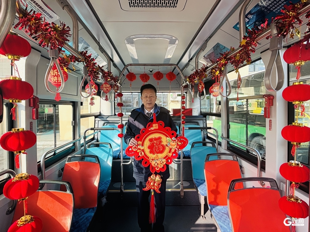 934路驾驶员李玉泉带领班组人员利用运营间隙,用绚丽拉花、喜庆中国结装饰车厢,将全新上线的“宝宝巴士”打造成移动的“新年温馨空间”。