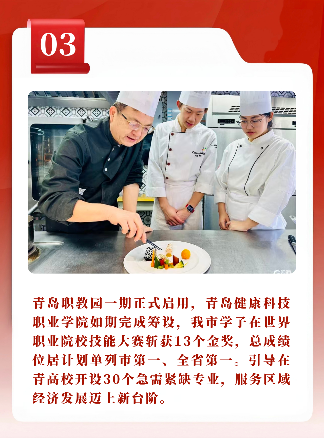 统筹优化职业教育布局,青岛职教园一期投入使用,青岛健康科技职业学院如期完成筹设。新增紧贴市场需求的高职专业50余个、中职专业40余个,五年制高职举办学校达到17所、招生计划突破1万人,为学生成长提供了更宽广的路径。在2025年世界职业院校技能大赛中,青岛以13个金奖、23个银奖、9个铜奖的总成绩,位居计划单列市第一、全省第一。山东大学青岛校区4名学者当选两院院士,新增青岛大学“集成电路设计与集成系统”等30个全市急需紧缺专业,山东科技大学、青岛科技大学获批全国重点实验室,健全高校服务区域经济社会的评价激励机制项目入选教育部试点。