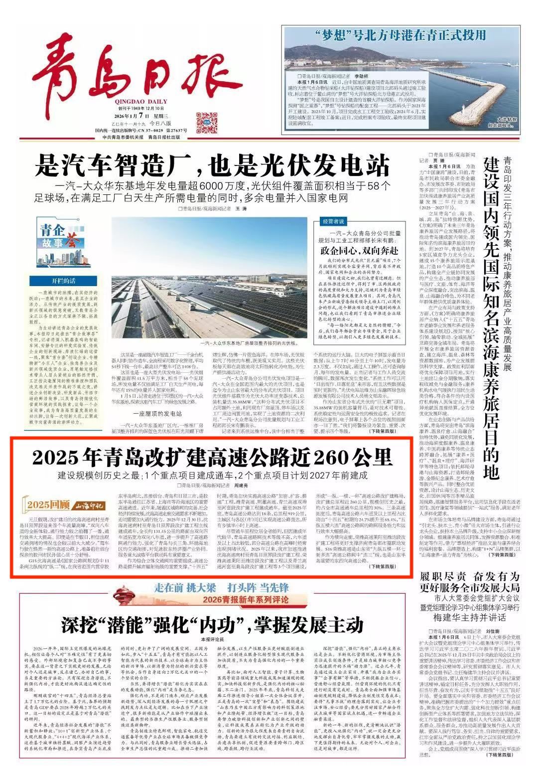 作为综合立体交通网的重要组成,高速公路是提升城市辐射能级的重要支撑。“十四五”时期,青岛加快实施高速公路“加密、扩容、提速”工程,潍青高速、明董高速、青兰高速双埠至河套段改扩建工程建成通车。截至2025年底,青岛高速公路达到18条,总里程919公里,主城区与各区(市)间已实现高速公路直达,所有乡镇半小时上高速。