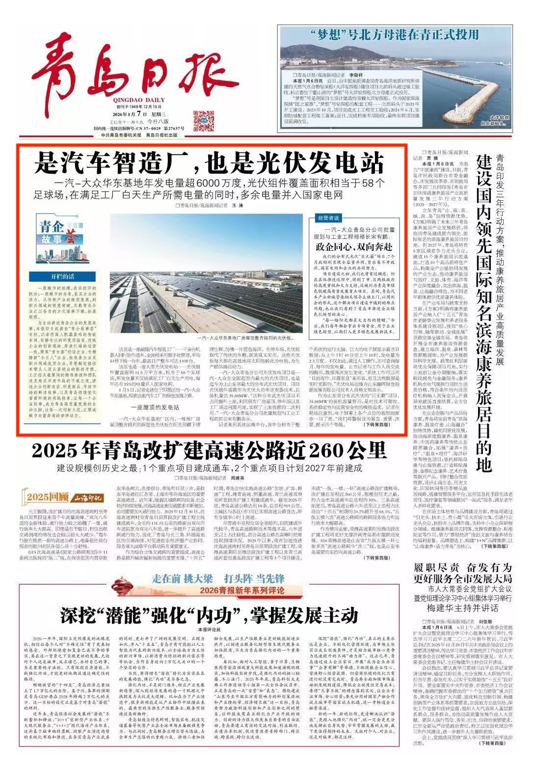 青岛日报2026年1月7日1版
