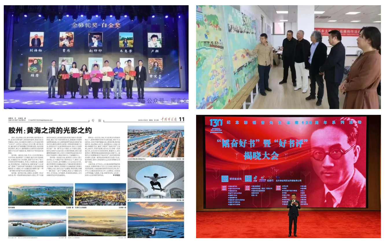 一年来,我市320余件文艺作品在省级及以上展览、赛事中入展、获奖。散文《耕海人》获第十一届冰心散文奖,童话作品《小黄牛和野斑鸠》获第八届“金骆驼奖·白金奖”。长篇小说《秋月高高照长城》、报告文学集《大国师者》、网络小说《十日终焉》三部作品入选首届“韬奋好书”。《十日终焉》还荣登中国作协网络文学中心推出的“中国网络文学影响力榜”。短篇小说《灯火深处》、中篇小说《体面》获评《北京文学》年度优秀作品。青岛画院书画家的《王羲之用笔赋》《嗨,家人们!》等4幅书法、美术作品入展由文化和旅游部主办的第九届全国画院美术作品展。工笔画《秋风随象归清谷》《世界之焦》《大国重器》等7幅作品入展由中国美术家协会、中国工笔画学会等主办的第十二届中国工笔画作品展。农民画《十二生肖迎新春》《秋分蟹儿肥》等17幅作品入展由中国美协主办的首届中国乡土绘画作品展。隶书《敦诗琢质联》、草书《王维诗二首》、隶书《文心雕龙节录》等17件作品分别入展第三届全国副省级城市书法作品展、第二届全国书法小品展、第十四届中国艺术节全国优秀书法篆刻作品展等展览。《中国摄影报》2025年第16期专刊刊发上合新区建设成果摄影作品20幅,并推介胶州经济社会发展成果。