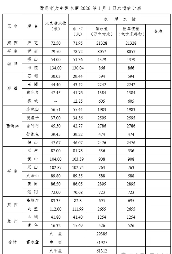 青岛日报社/观海新闻1月7日讯 刚刚过去的12月,青岛下了多少雨,水库蓄了多少水?近日,水文局发布了青岛2025年12月水情月报。12月份,全市平均降水量19.6毫米,比历年同期偏多9.3毫米(90.3%),比去年同期偏多18.6毫米(18.6倍),列1952年有水文统计资料以来历史同期从大到小第16位,降水偏多。