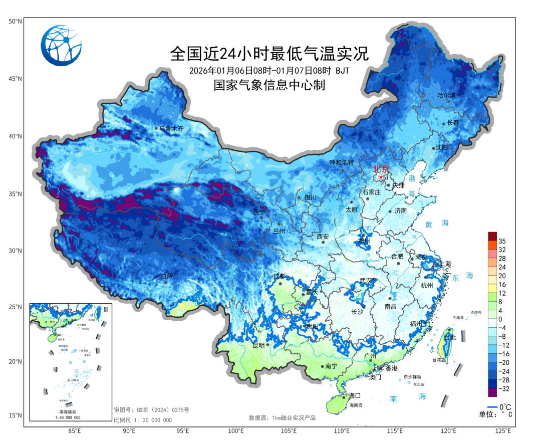 即使在广西、广东、福建东部沿海,早晨最低气温也只有个位数,连海南的最低气温也只有10℃出头。