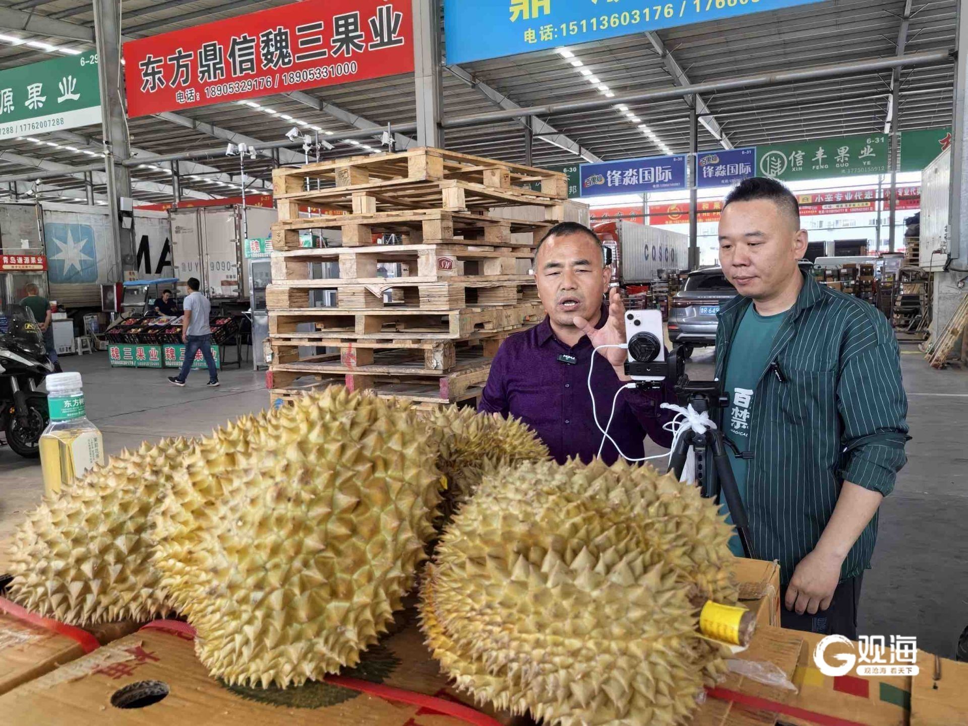 如果说车厘子是冬日水果市场的“人气王”,那么榴莲便是初夏青岛水果市场的“流量担当”。每年5月初,青岛东方鼎信国际农副产品交易中心内总会弥漫开浓郁的榴莲香气,独特的味道勾得一众爱好者闻香而至。如今,进入青岛的榴莲主要来自泰国与越南,运输方式包括空运、海运、陆运等多种方式,高峰期每日入青量高达400万斤,青岛也稳稳坐实北方“榴莲之王”的美誉。