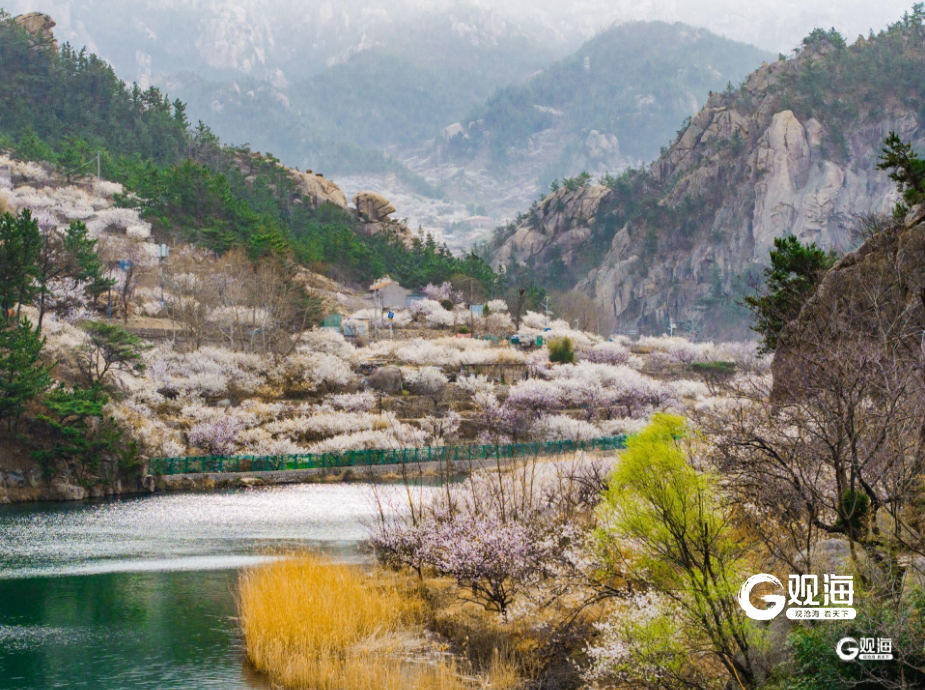 春日的崂山,是被云雾揉碎的诗。暖阳穿透薄雾,洒在漫山的樱桃花与连翘上,粉白与明黄交织,顺着蜿蜒的石阶铺展。山涧的冰棱消融成潺潺细流,伴着鸟鸣声,在怪石间叮咚作响。偶有山风拂过,带着草木的清新,云雾便似轻纱般漫过峰顶,将庙宇红墙晕染得朦胧,让人疑心误入了仙家秘境。