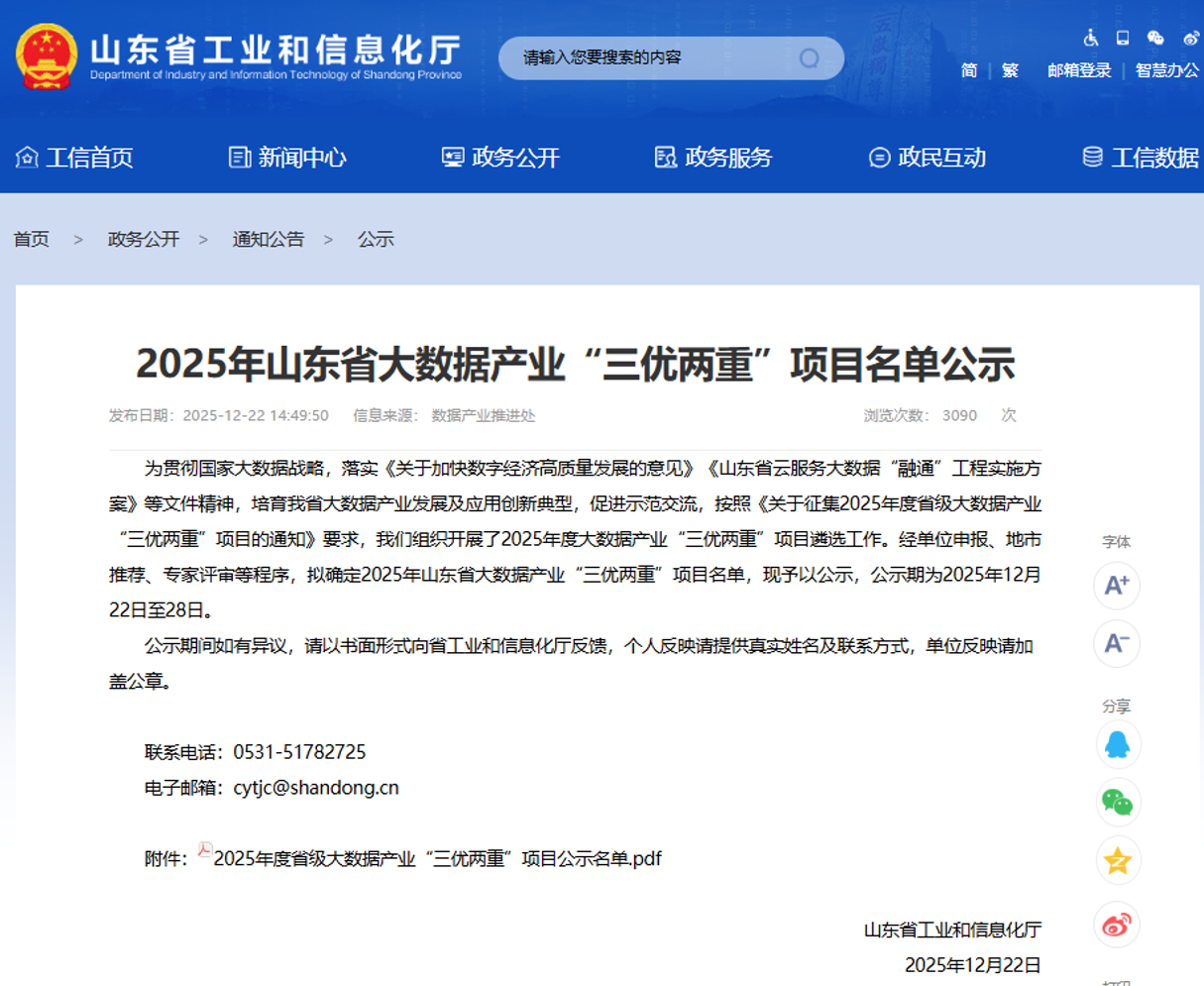 “三优两重”项目是指优秀大数据产品、优秀大数据解决方案、优秀大数据应用案例和重点数厂、重点数商。省级大数据“三优两重”项目评选工作是山东省贯彻国家大数据战略,培育大数据产业发展及应用创新典型,促进示范交流的重要举措。旨在充分发挥数据要素作用,持续推动全省大数据产业快速发展,促进数字技术与实体经济深度融合。