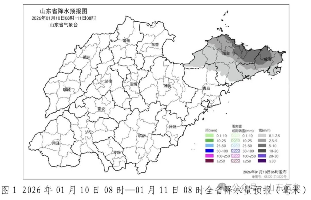 烟台北部和威海有明显降雪