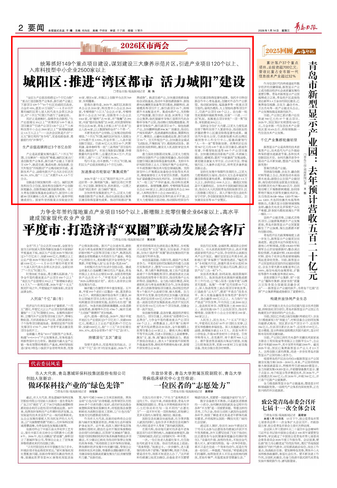 2026年是“十五五”规划开局之年,必须迈好第一步、展现新气象。城阳区将扛牢责任、守正创新、顺势而为、系统谋划,一以贯之推进“湾区都市 活力城阳”建设。
