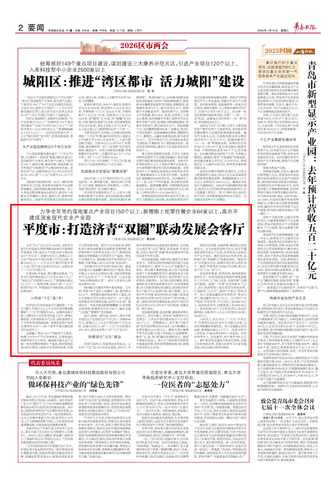 青岛日报2026年1月14日2版