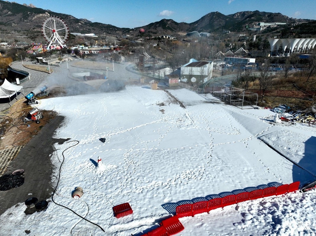 据现场工作人员透露,1月17日左右,这片雪白天地将正式开启。(青岛日报/观海新闻记者 王雷 文/图)