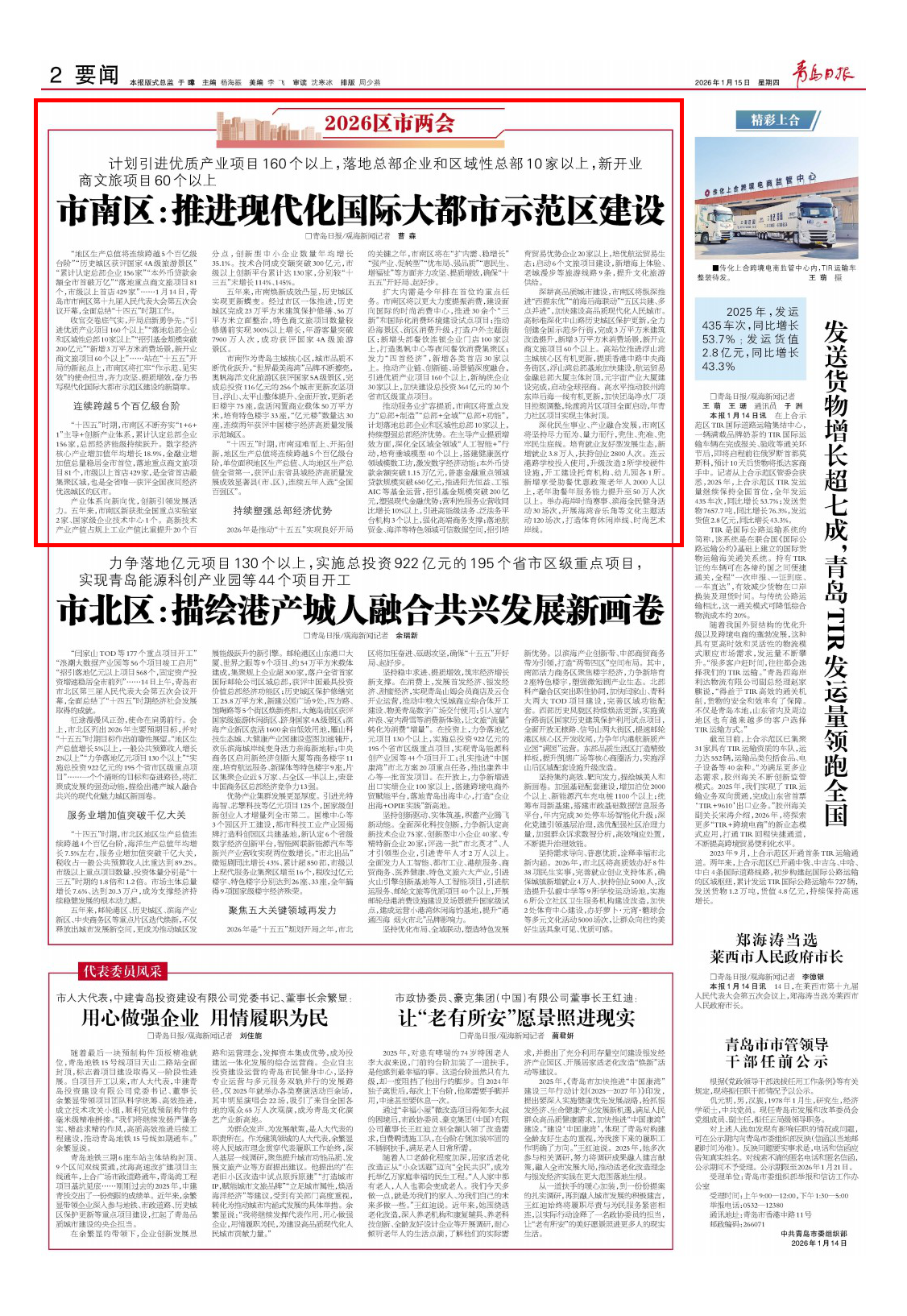 青岛日报2026年1月15日2版