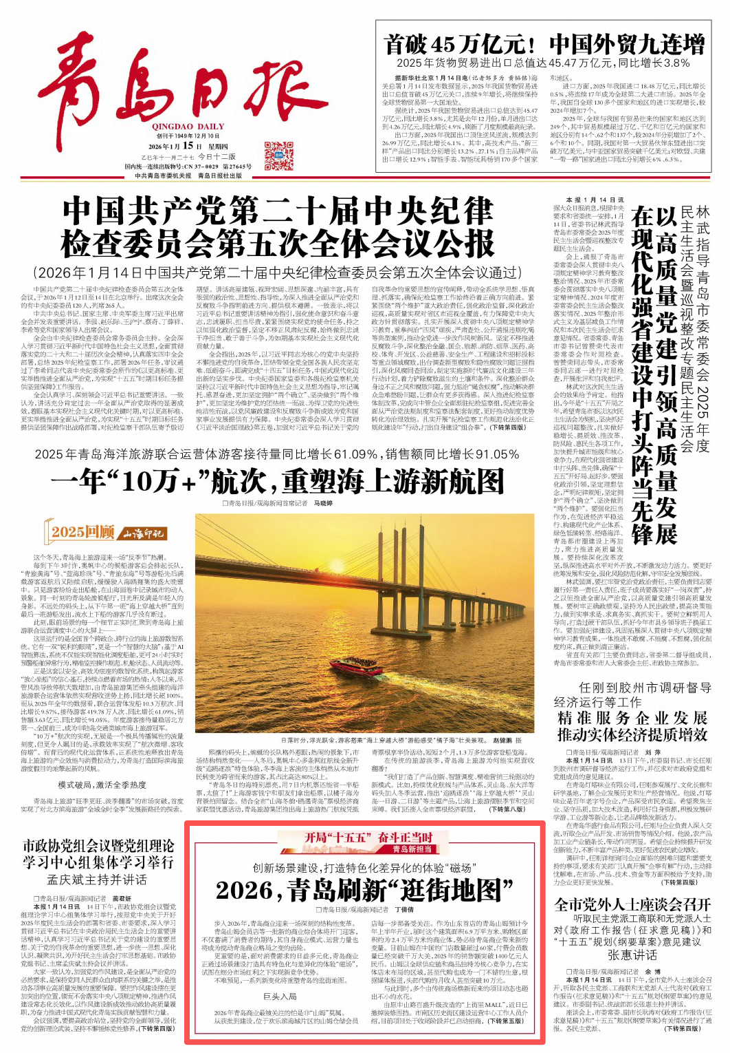 青岛日报2026年1月15日1版