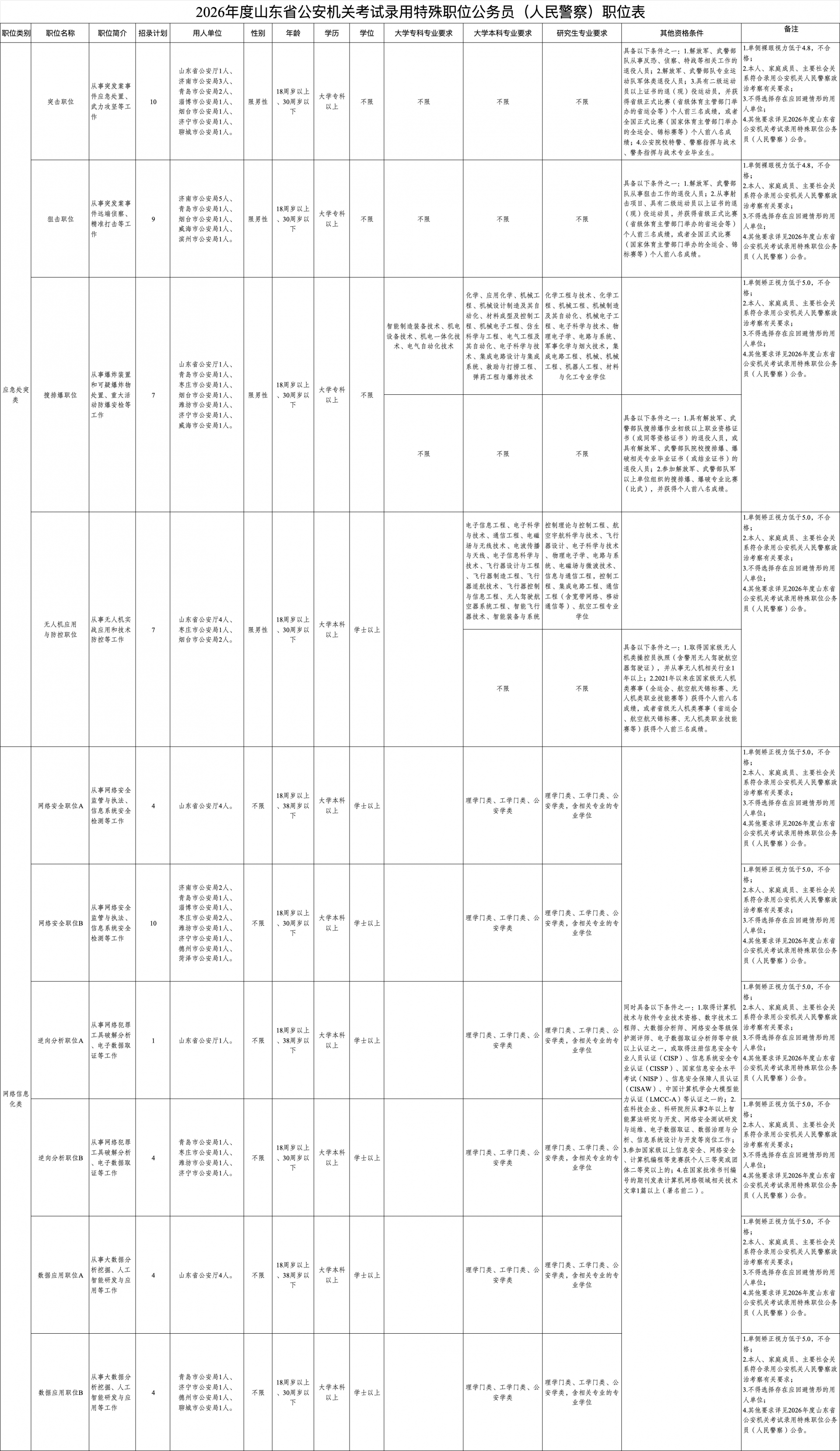 附件:2026年度山东省公安机关考试录用特殊职位公务员(人民警察)公告