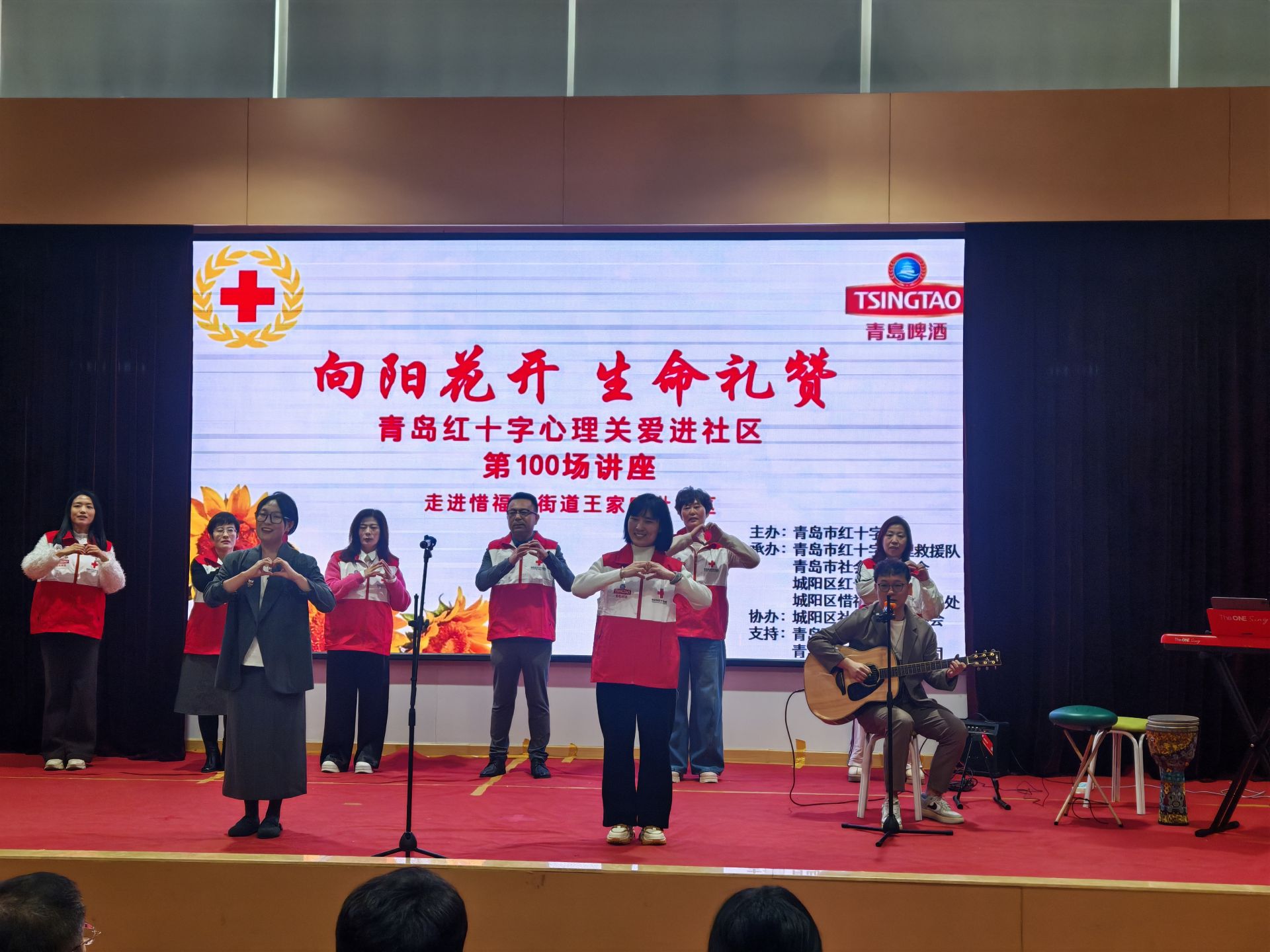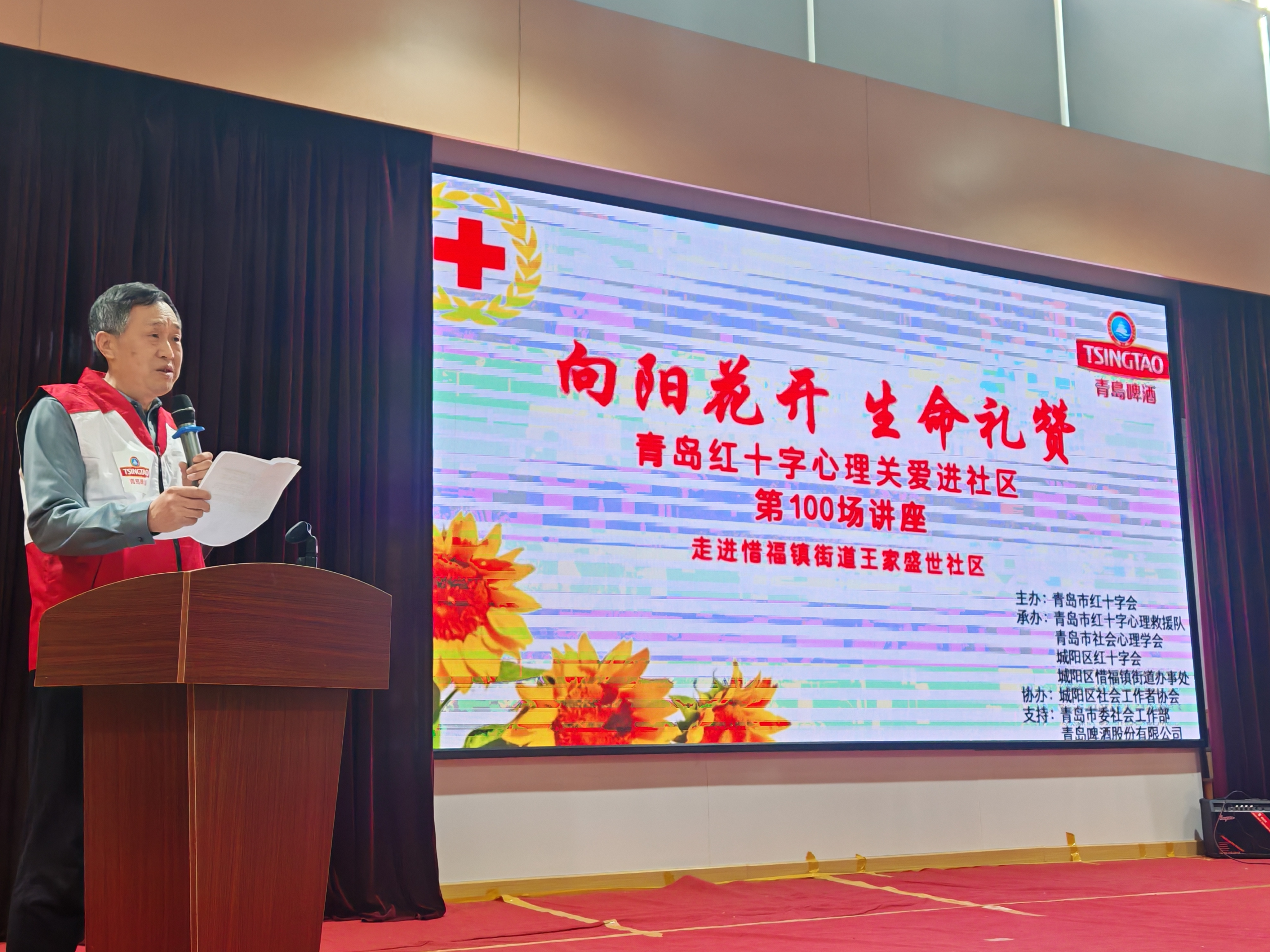 青岛日报社/观海新闻1月16日讯 1月16日,第100场“向阳花开,生命礼赞”青岛红十字心理关爱进社区活动在城阳区惜福镇街道王家盛世社区举行,150余名社区群众参加了“音乐太极疗愈身心健康筑和谐”为主题的讲座和互动交流。