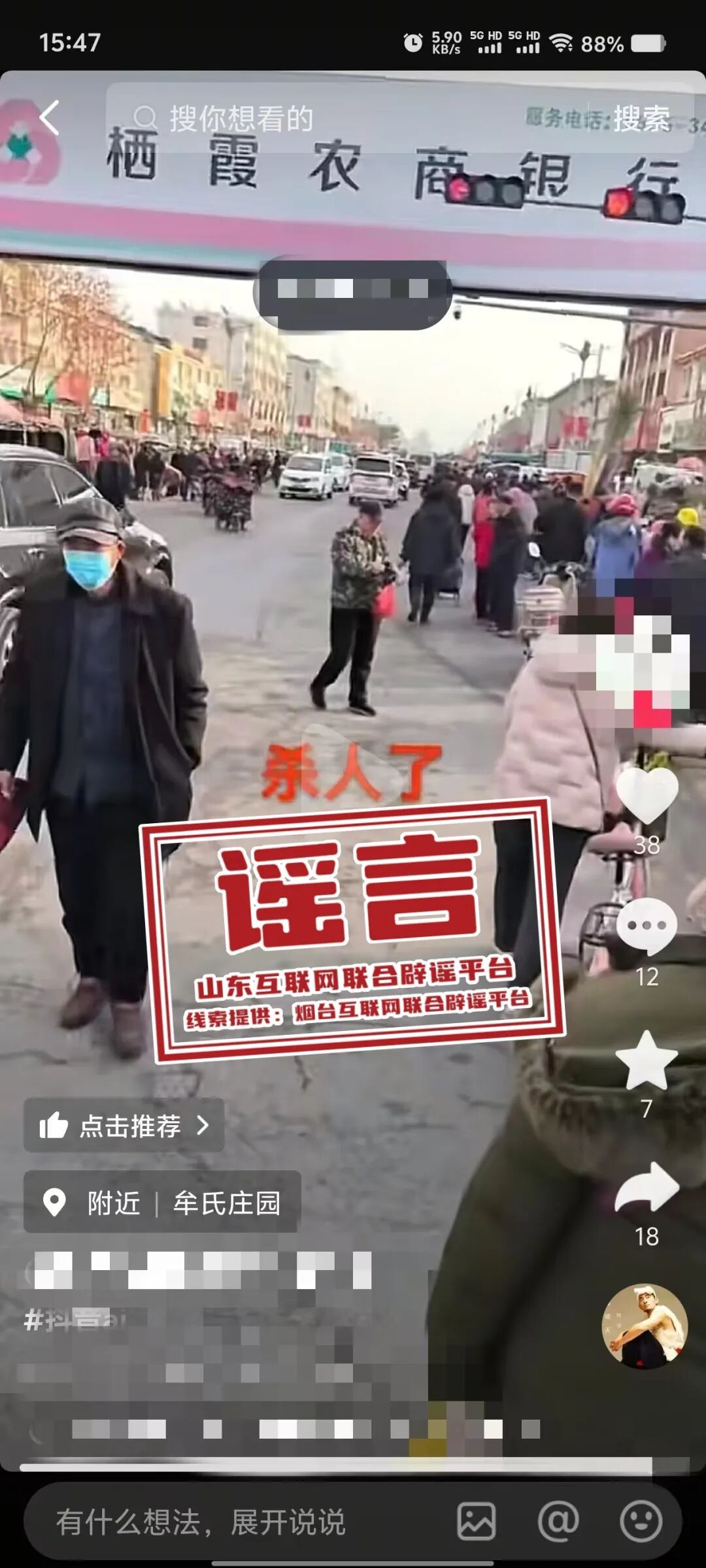 近日,栖霞网信、公安部门巡查发现,网民“占**”在某短视频平台发布视频并配文,相关视频在互联网传播,引发当地居民恐慌,严重扰乱社会公共秩序,造成不良社会影响。经核实,网民“占**”身份系王某,其为博取流量故意发布虚假信息。属地公安机关依法将王某传唤到案,王某对在网上发布虚假信息、散布谣言的违法行为供认不讳。目前,违法嫌疑人王某已被依法行政拘留。