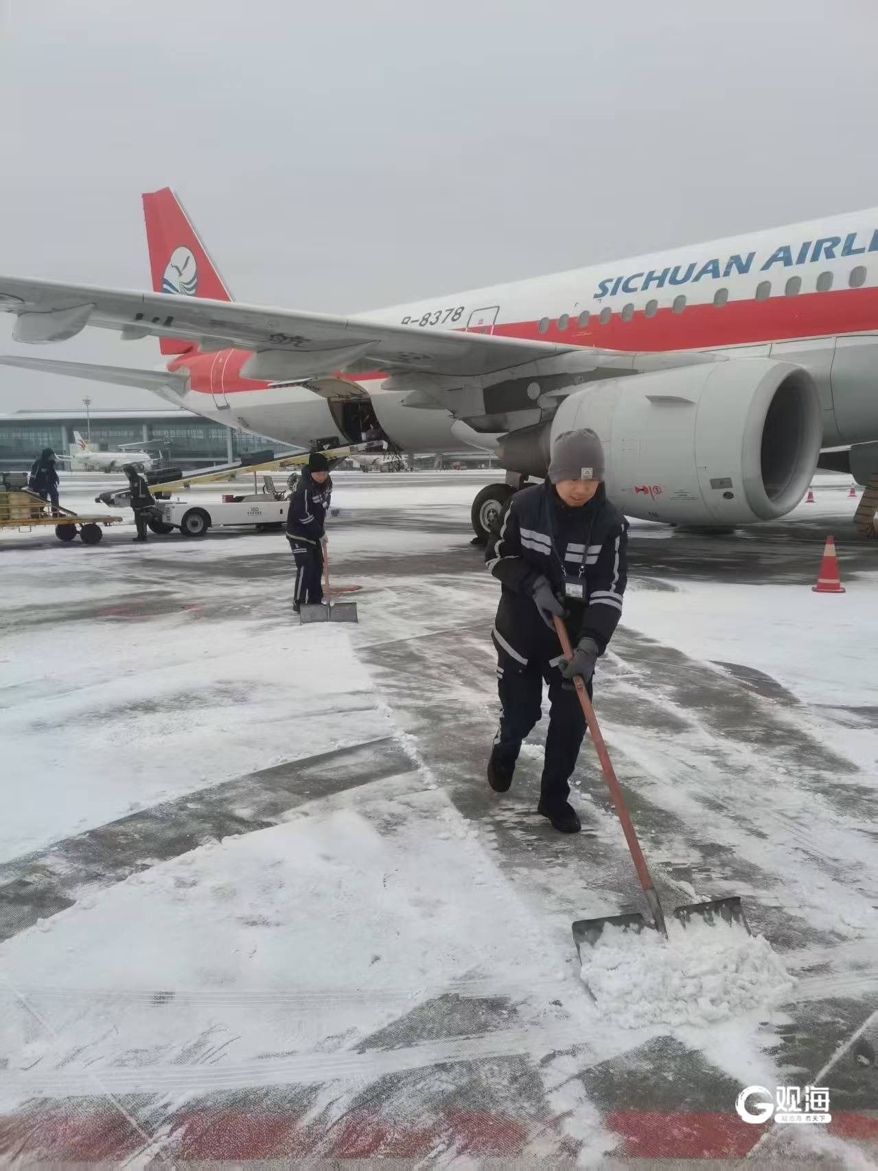 为保障航班运行顺畅,青岛机场相关单位根据现场气温及雪情,第一时间出动人员及除冰液撒布车、扫雪车等设备车辆,有序开展航空器除防冰作业,预计1月18日进出港航班503架次。截至上午12时,进出港航班均正常起降,现场整体运行安全平稳、航站楼内无旅客滞留,井然有序。