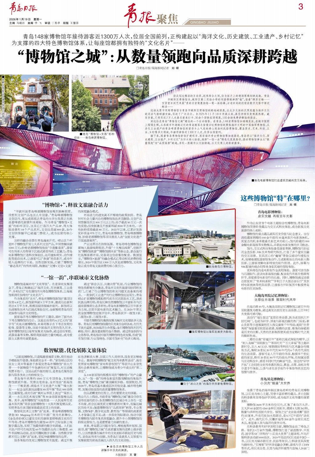 未来,青岛需以问题为导向,精准施策补短板、强弱项,使“博物馆之城”在高质量发展的道路上稳步前行,让这些散落在城市中的文化地标串联起历史与现代、肩负起传承与创新,为青岛打造兼具人文厚度与发展锐度的滨海名城注入持久的文化动能。(青岛日报/观海新闻记者 刘硕/文 王雷/图)