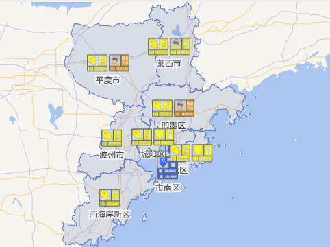 青岛全市多个气象预警生效中。