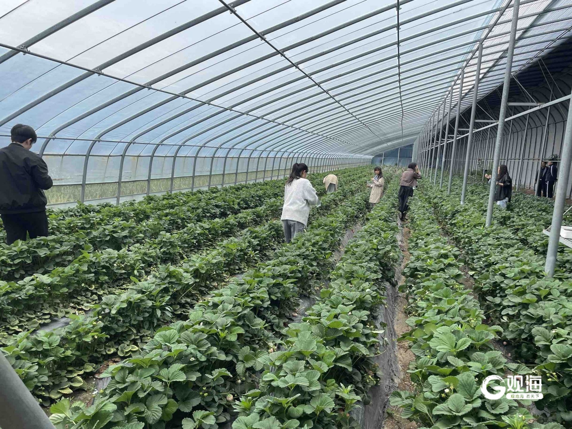 莱西市日庄镇半亩花田家庭农场内,游客正在采摘。