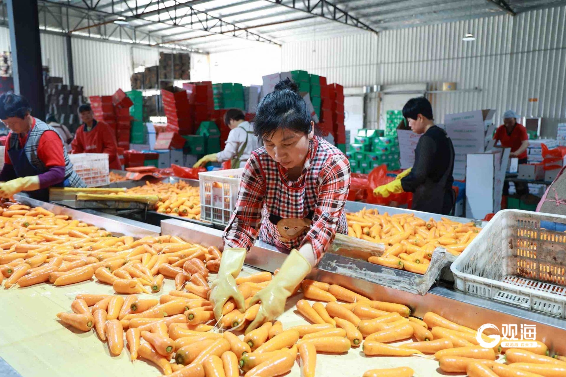 莱西市店埠镇村民正在进行胡萝卜加工。