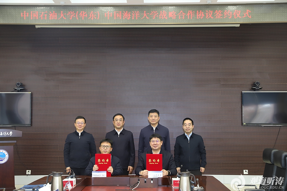 青岛日报社/观海新闻1月21日讯 日前,中国海洋大学与中国石油大学(华东)战略合作协议签约仪式在中国海洋大学崂山校区举行。中国石油大学(华东)党委书记吴强明,党委常委、副校长周鹏,党委副书记、纪委书记刘珂出席仪式。中国海洋大学党委书记李明,党委副书记、纪委书记俞黎阳出席仪式,党委常委、副校长王厚杰主持仪式。