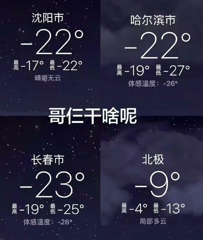 也有网友发现,我国东北地区、内蒙古东部等地比北极冷多了。
