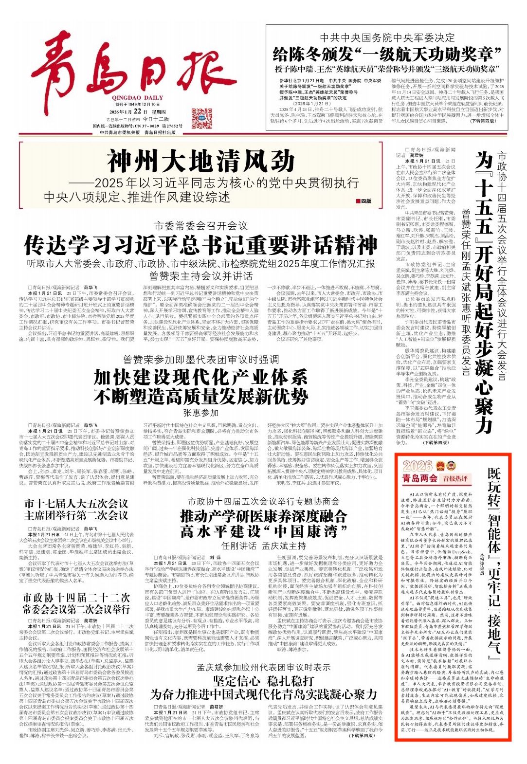 青岛日报2026年1月22日1版