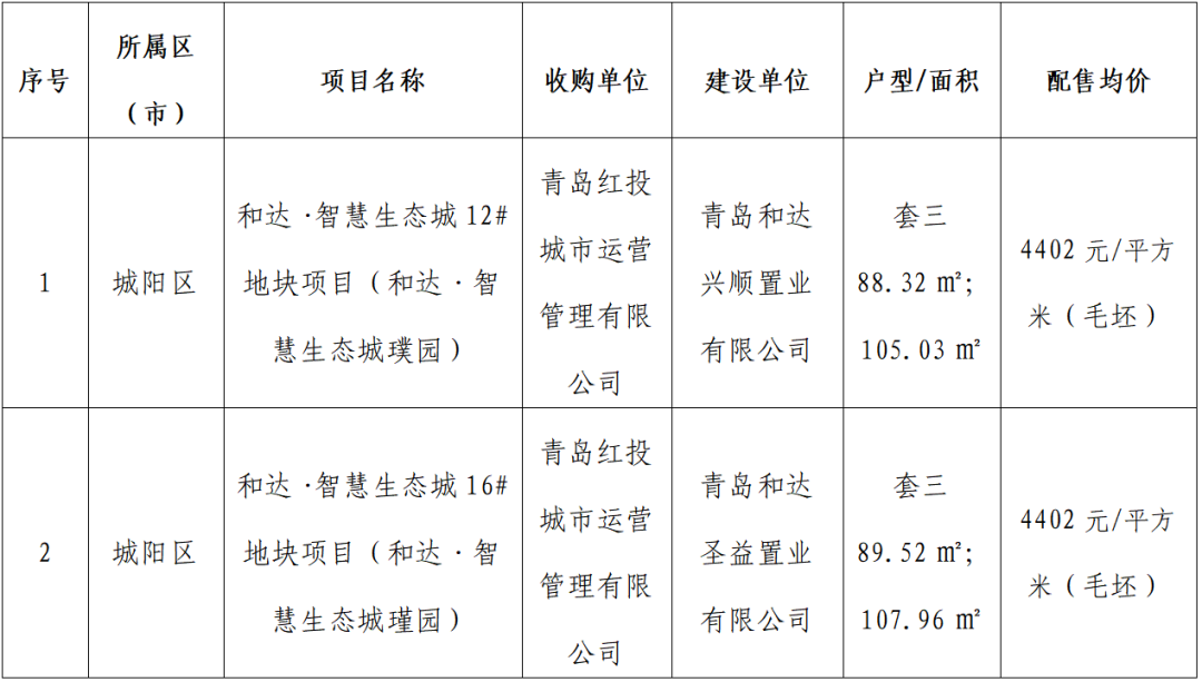 青岛日报社/观海新闻1月22日讯 日前,青岛市住房和城乡建设局发布关于和达·智慧生态城项目12#、16#地块配售型保障性住房购买需求征集有关事宜的公告。具体事宜公告如下: