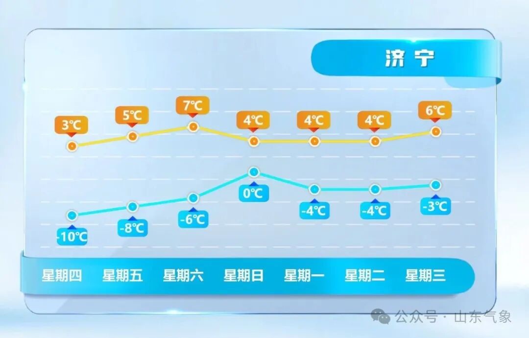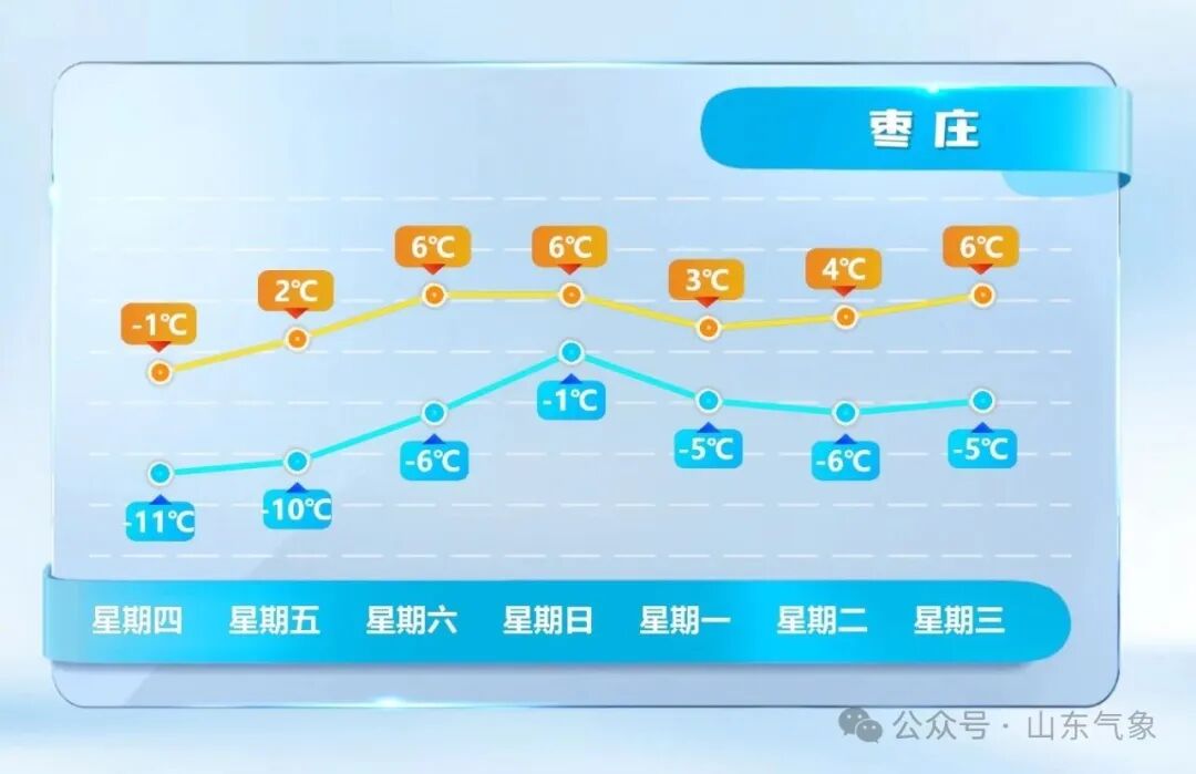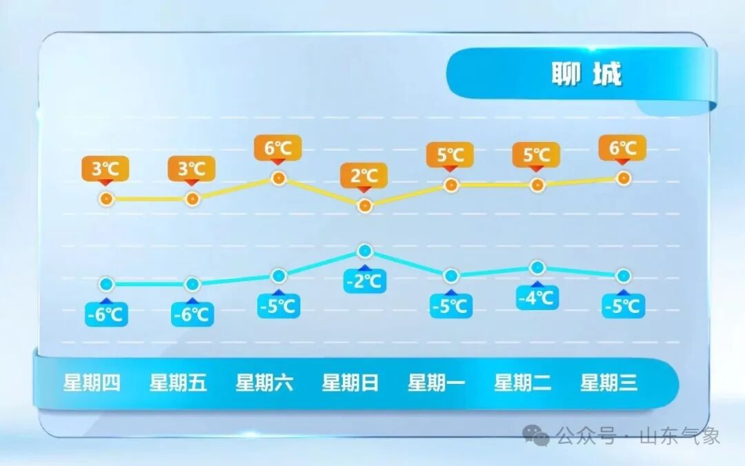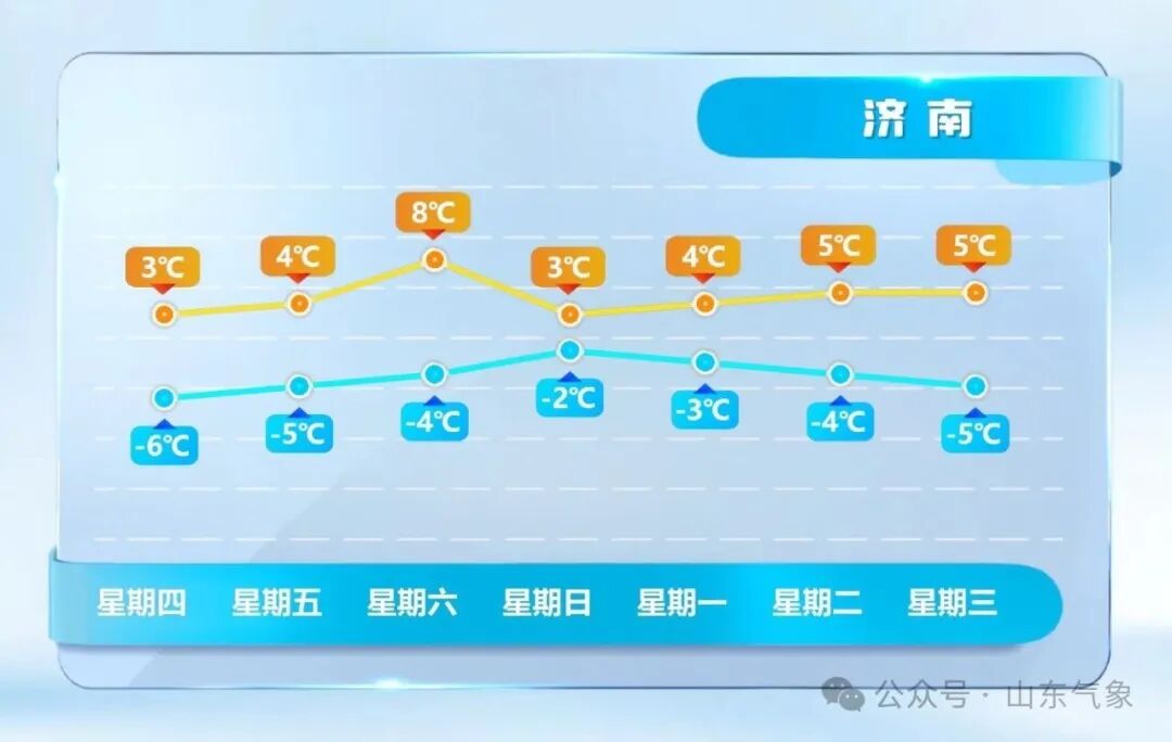 22日白天到夜间,全省天气晴间多云。半岛地区北风4级阵风5~6级转南风3~4级,济南、泰安、菏泽、鲁西北地区南风4级阵风5~6级减弱到2~3级,其他地区南风2~3级。夜间最低气温:东营、枣庄、鲁中山区和半岛内陆地区-10~-8℃,其他地区-6℃左右。最高气温:枣庄、鲁中山区和北部沿海地区-1℃左右,其他地区2℃左右。