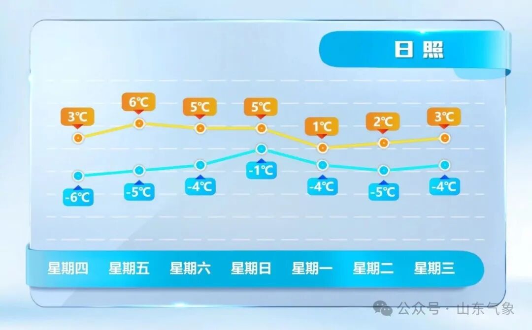 24日白天到夜间,全省天气晴转多云。半岛地区北风4级阵风5~6级,其他地区南风转北风3~4级。夜间最低气温:半岛内陆地区-6℃左右,其他地区-3℃左右。最高气温:东营和半岛地区2℃左右,其他地区6℃左右。