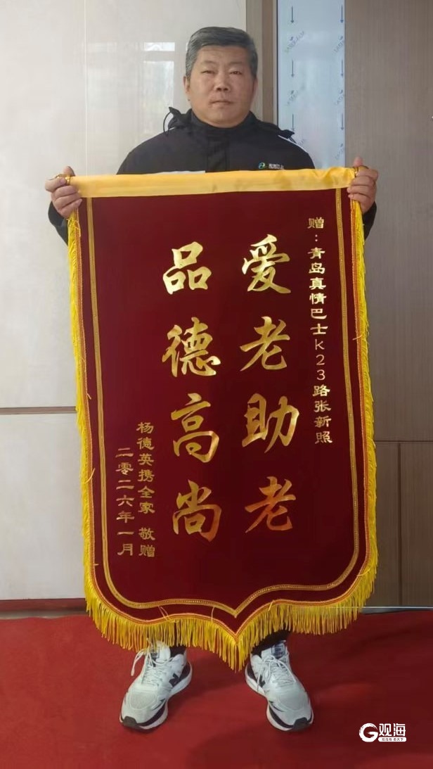 青岛日报社/观海新闻1月23日讯 1月22日,青岛真情巴士集团1823路驾驶员张新照收到了市民杨大姨送来的锦旗。这面锦旗的背后是一件冰雪天里的暖心故事。