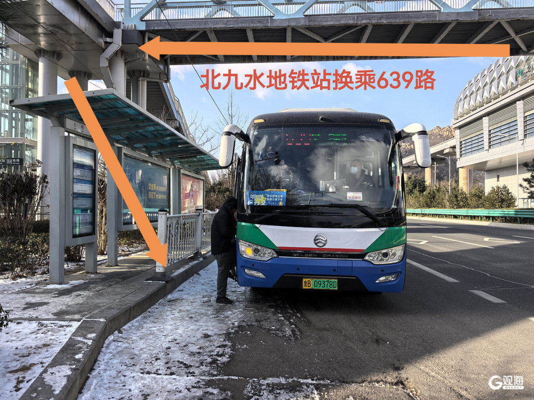 2.地铁换乘:乘蓝谷快线在北九水站换乘639路;或在蓝谷快线北宅站下车,前往周哥庄公交站换乘639路(人多时错开站换乘更方便)。