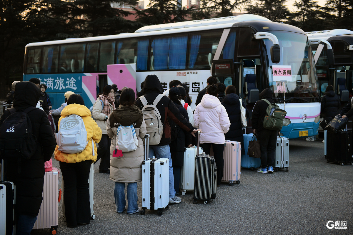一辆辆“诚载美好”大巴,不仅承载着学子们归家的迫切,也传递着城市服务的温度与关怀。“太方便了!以前去车站拖着箱子挤公交特别麻烦,现在直接从学校出发,省心多了。”来自青岛理工大学的学生王同学表示。“工作人员特别热情,帮忙放行李、提醒我们注意安全,感觉特别温暖。”青岛黄海学院的李同学也为这项服务点赞。