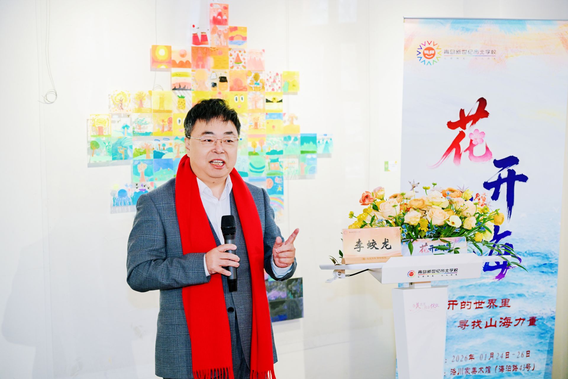 青岛日报社/观海新闻1月24日讯 24日,青岛市北新世纪学校在位于大鲍岛的洛川家美术馆举行了“花开山海”为主题的学生画展。嘉宾与家长一同走进孩子们用画笔构筑的纯真世界,共同见证美育深耕的丰硕成果,共赏山海文化的艺术表达。
