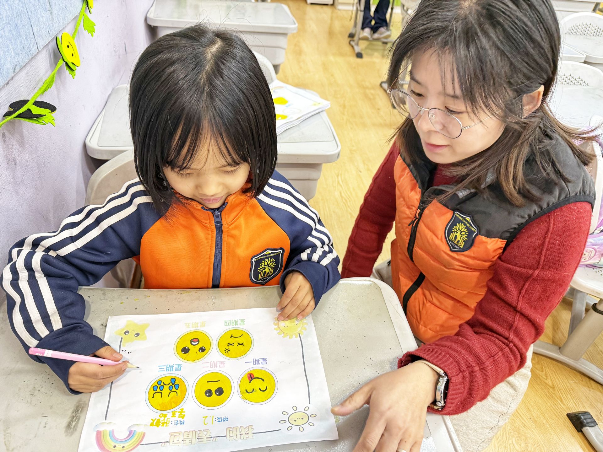 随后,老师们引导孩子将心情化作表情包:上扬的嘴角是快乐,皱起的眉头是愤怒,耷拉的眼角是忧伤。一张张童趣表情包贴满成长册,让情绪表达鲜活有趣,也让孩子学会正视每一种心情。