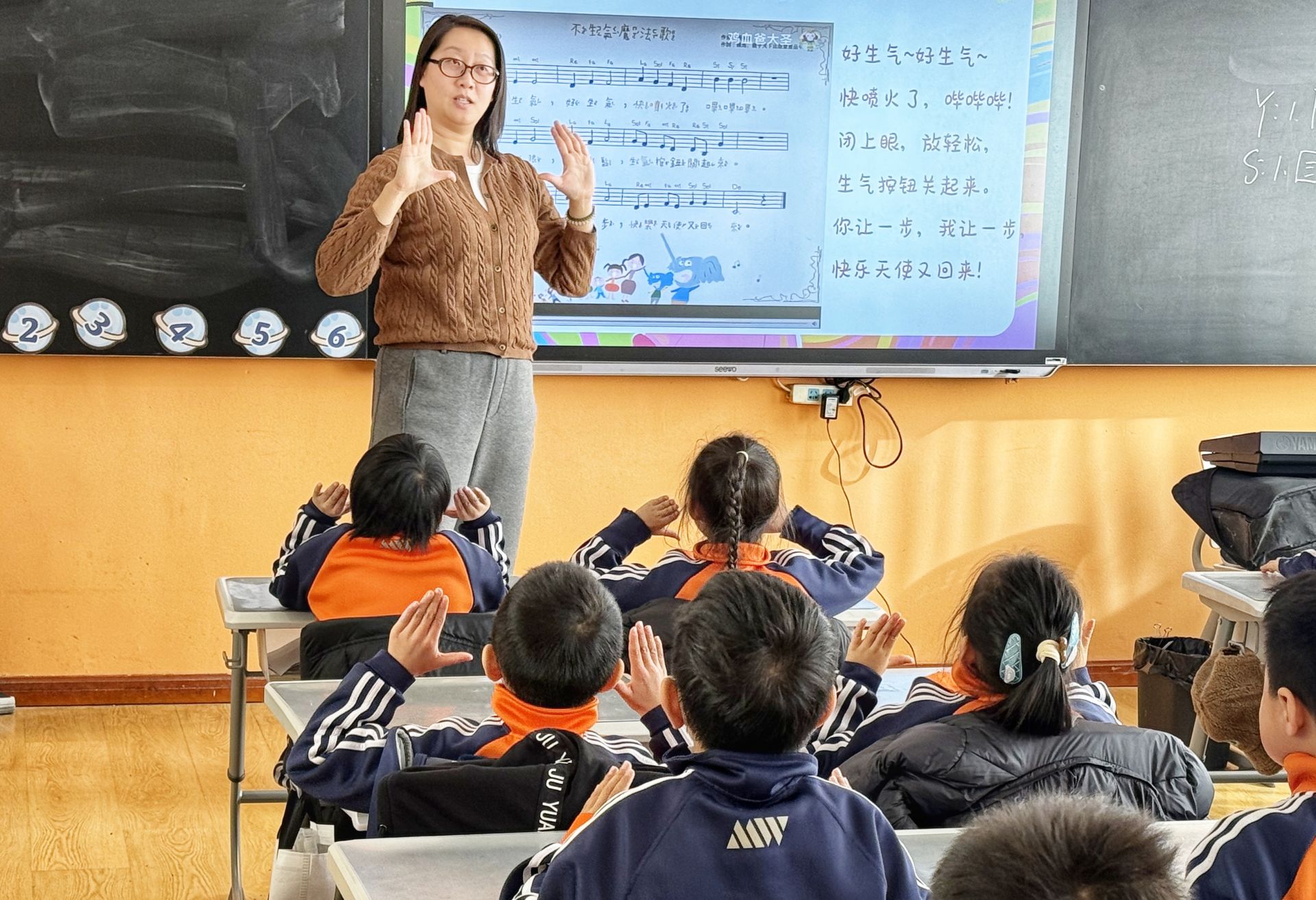 另外,老师们还化身“情绪向导”,为每种情绪搭配专属“情绪小精灵”与歌曲:快乐配《幸福拍手歌》,平静配《小美满》,忧伤配《我不开心》,愤怒配《生气王子》。孩子们依心情选歌演唱,用视频记录瞬间,歌声释放情绪,旋律滋养心灵。